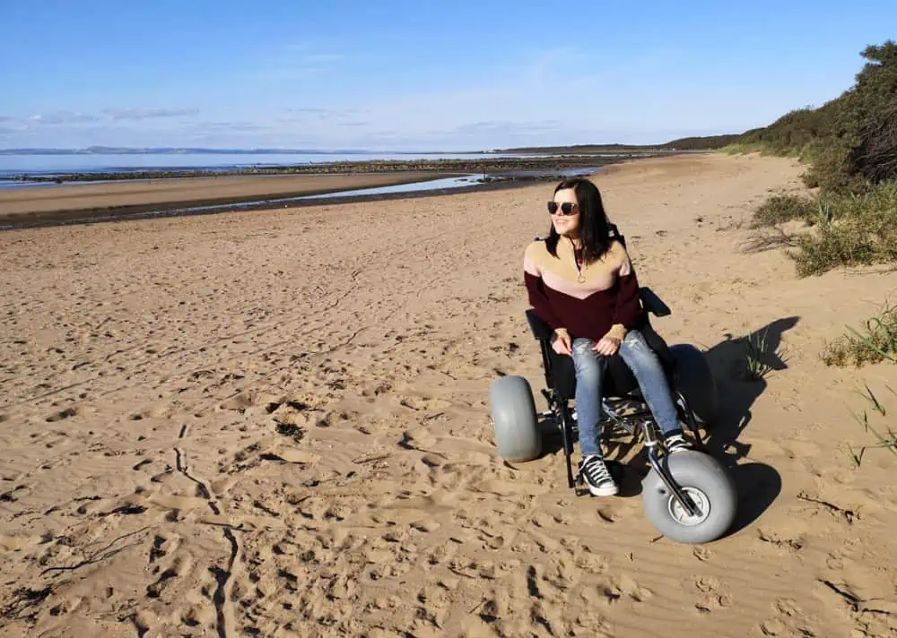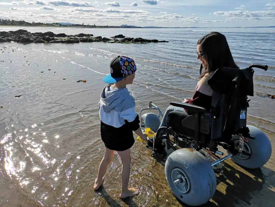 “Having the WheelEEZ® beach wheelchair conversion kit is going to allow me to enjoy all those things, so I don’t have to miss out anymore. Not only sandy beaches, but the conversion kit can also allow easy access over gravel pathways, woodland, tracks and trails. We tried it out for the first time a few weeks ago at Longniddry Beach, East Lothian in Scotland. It was a beautiful day and we had a great day with my sister and nephew.”